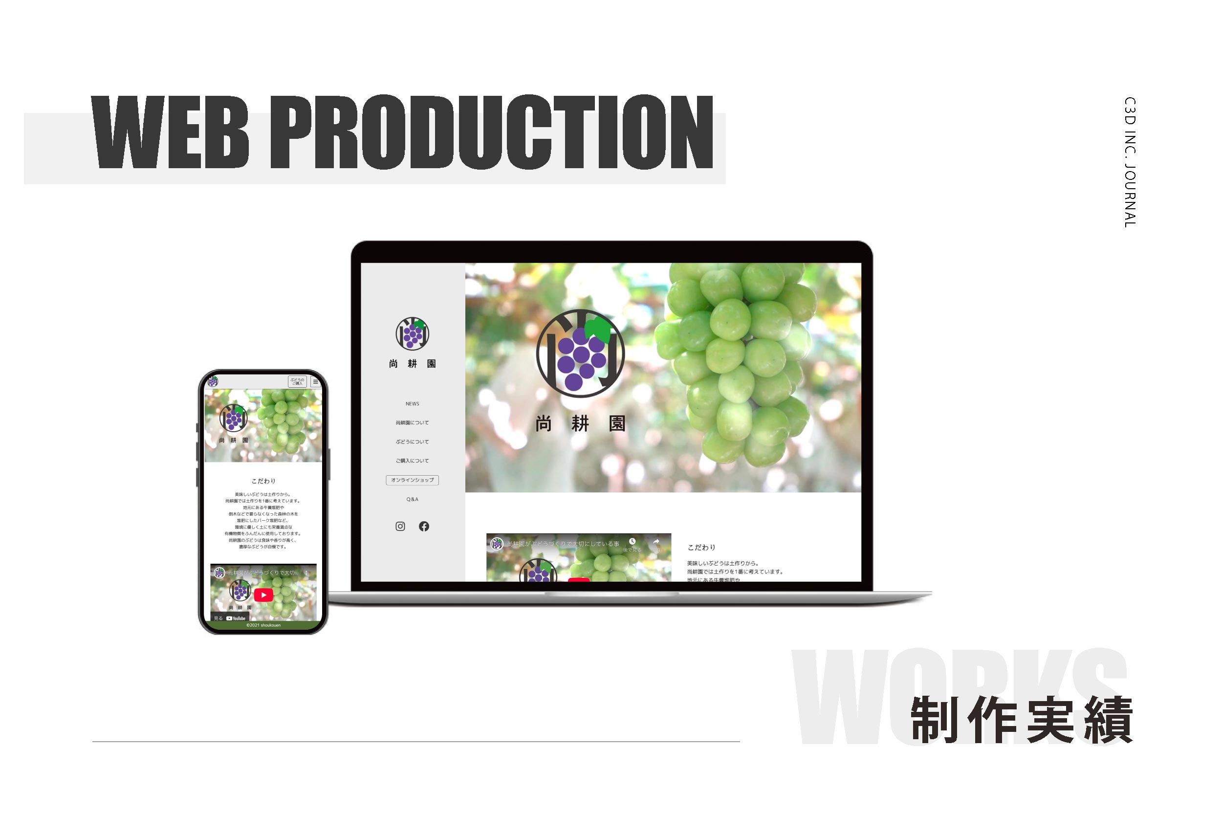 WORKS 制作実績 DTP/Design デザイン/各種印刷物 チラシ制作:山梨県中小企業家同友会 富士山支部 様 チラシ, 写真撮影 販促品制作:ナダヤ 様 ポスター, ラベル, リーフレット チラシ制作:富士ゑびす商店会様 チラシ チラシ制作:WORK-S富士山店様 チラシ チラシ・チケット制作:林家つる子様・鏡味味千代様 チラシ チラシ制作:酔処きよ様 チラシ パンフレット制作:富士山麓電気鉄道 様 パンフレット パンフレット制作:Earth Roof 様 パンフレット 販促品制作:ナダヤ 様 ポスター, ラベル, リーフレット Website Production ウェブサイト制作 web制作:山梨県倫理法人会 様 web制作, 写真撮影, 動画撮影 web制作:MIYABI 様 web制作, ロゴデザイン, 写真撮影, 動画撮影 web制作:富士研修所 様 web制作, 写真撮影 web制作:お宿 櫻川 様 web制作, ロゴデザイン, 写真撮影, 動画撮影 web制作:Brick Villa TSUKI様 web制作, ロゴデザイン, 写真撮影 web制作:日蓮宗宗聚山 蓮照寺 様 web制作, ロゴデザイン, 写真撮影 web制作:鹿留リバティステイ 様 web制作, ロゴデザイン, 写真撮影 web制作:ナダヤ富士山蒸留所 様 web制作, ロゴデザイン, 写真撮影, 動画撮影 web制作:なだや 様 web制作 web制作:中村製作所 様 web制作, 写真撮影, 動画撮影 web制作:尚耕園 様 web制作, ドローン撮影, ロゴデザイン, 写真撮影, 動画撮影 Shooting 写真/動画撮影 チラシ制作:山梨県中小企業家同友会 富士山支部 様 チラシ, 写真撮影 写真撮影:VOICEROOM様 写真撮影 スタジオにて初の商品撮影 写真撮影